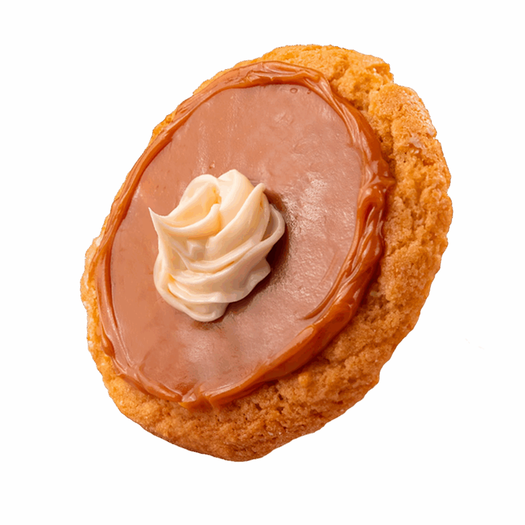 Toffee Caramelo: Doce de leite e creme de leite ninho em um cookie que derrete na boca.