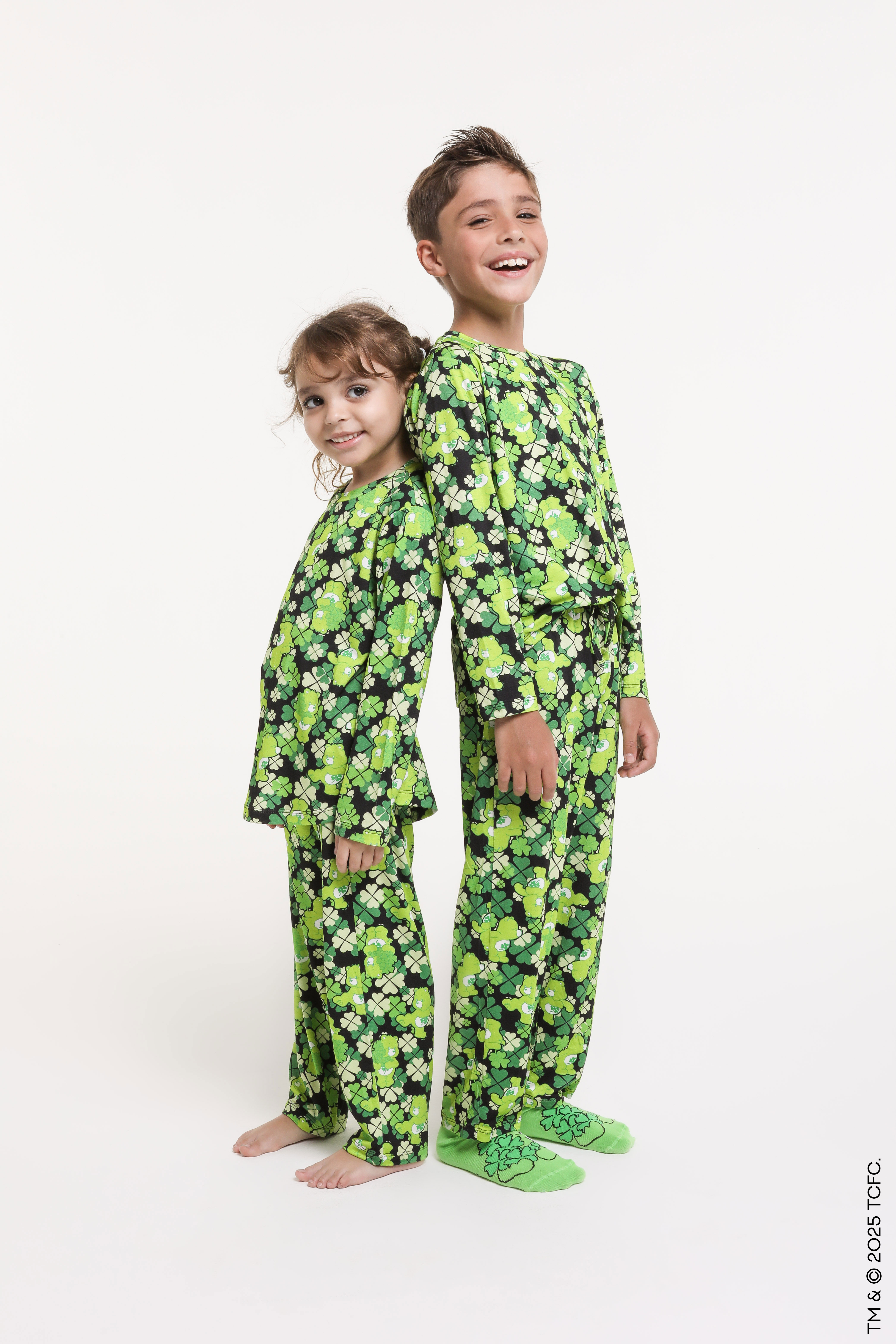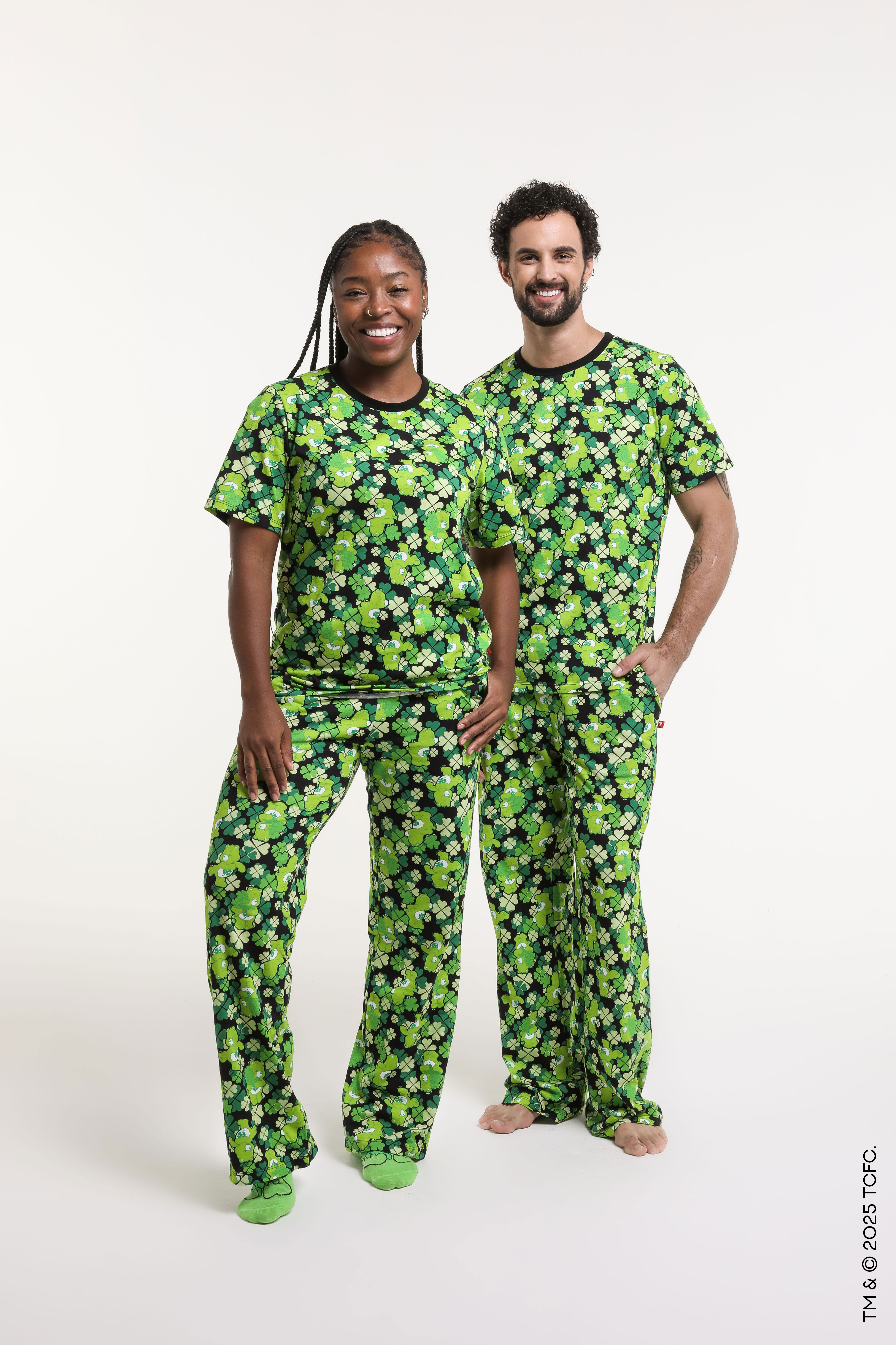 A coleção Ursinhos Carinhosos Boa Sorte chega com estampas exclusivas em tons vibrantes de verde sobre fundo escuro, trazendo um equilíbrio entre fofura, positividade e estilo. São pijamas em modelagem de camisetas, calças e meias — as famosas TJameias — com versões para adultos e crianças, pensadas para vestir toda a família com muito carinho e bom humor.