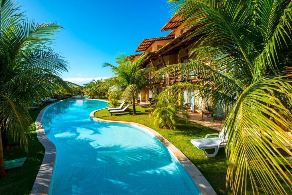 Com uma estrutura encantadora e pensada para todas as idades, o resort convida seus hóspedes a relaxarem, se divertirem e criarem memórias únicas. Nossa piscina de 180 metros de pura refrescância, cercada por coqueiros e espreguiçadeiras, é o cenário perfeito para dias de sol e descontração.