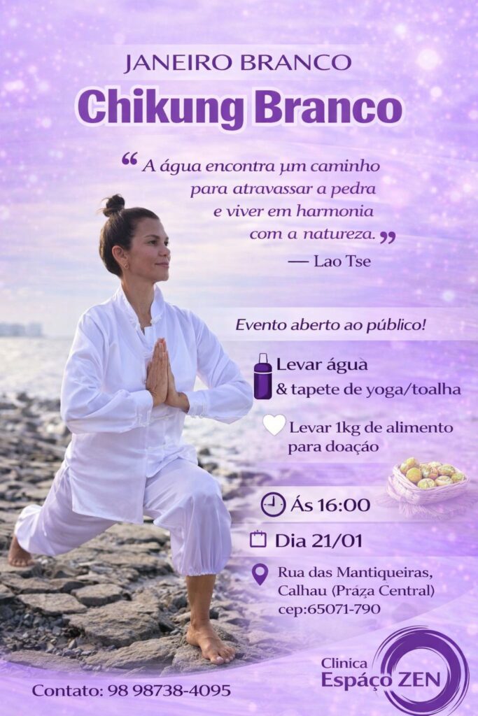 A Clínica Espaço Zen, reconhecida por promover ações voltadas ao bem-estar integral do ser humano, realiza no próximo dia 21.01 às 16h a atividade Chikung Branco, em apoio à campanha Janeiro Branco, que chama atenção para a importância da saúde mental e emocional.