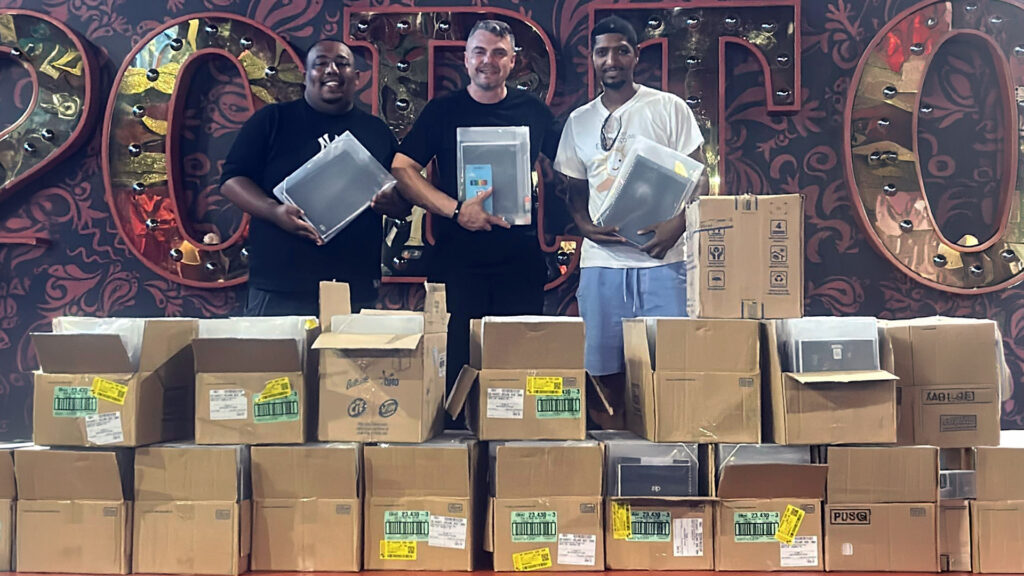 Na capa: Equipe Cara de Mau entrega material escolar para representantes da Escola Luiza Corrêa – Crédito Juliana Santos