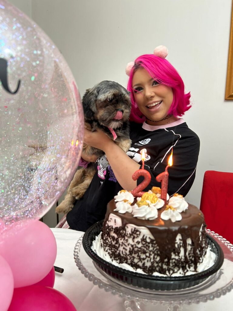 Após o almoço, as celebrações continuaram na intimidade de seu lar. Um dos pontos altos do dia foi o momento dedicado à sua fiel companheira, a pet Mocca, que não ficou de fora dos registros e dos mimos da data especial.