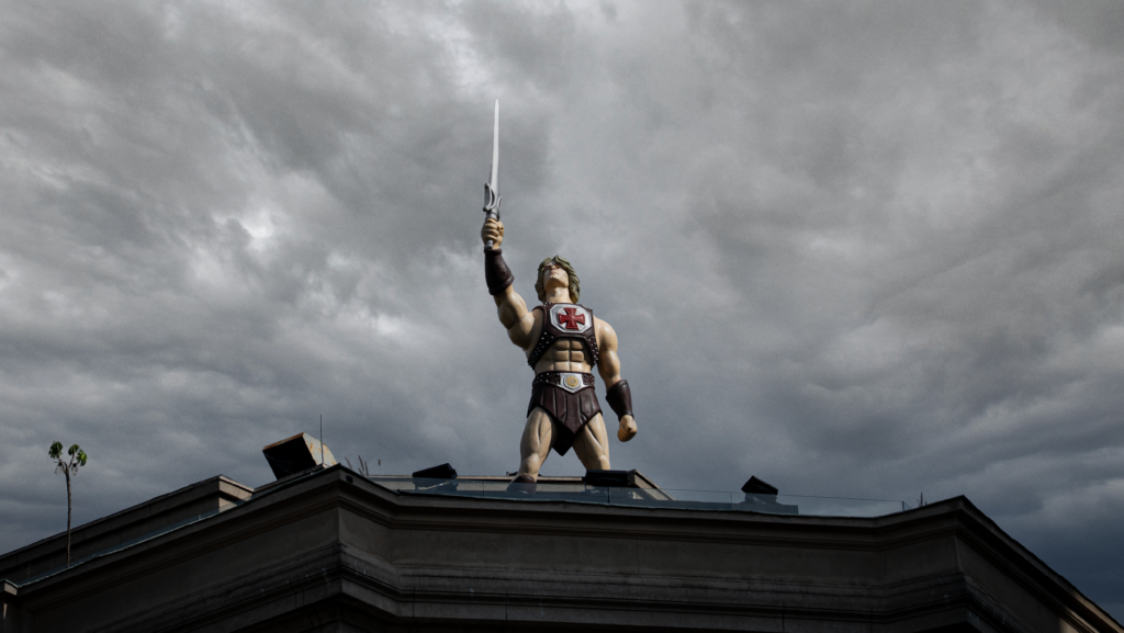 Com 6 metros de altura, a estrutura reproduz o visual do personagem em sua pose mais emblemática: espada em punho, apontada para o alto, pronta para canalizar o poder de Grayskull. Posicionada no coração da cidade, a estátua teve como destaque a Espada do Poder, que ganhou uma iluminação especial em celebração ao lendário bordão “Eu tenho a força!” e criou um espetáculo visual para quem transitava pela região.