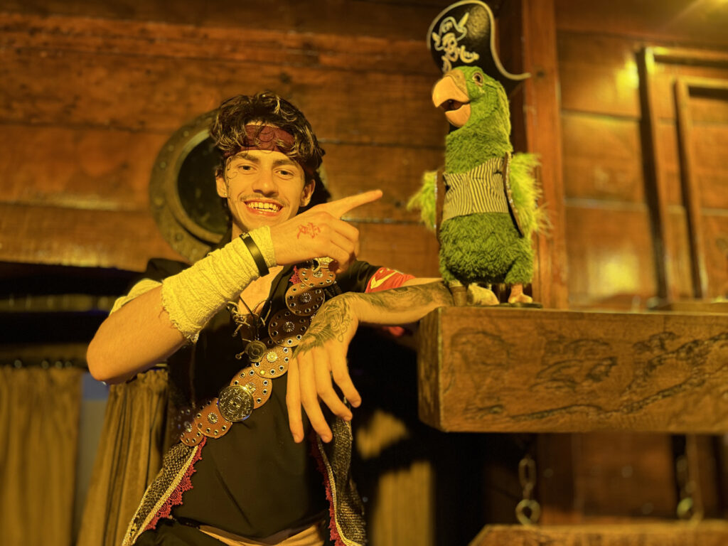 Usando tecnologia da robótica, o Grupo Unity investiu em animatronics para dar “vida” a Mussarelo e Calabreso, dois papagaios tagarelas, que prometem movimentar o Porto e o Navio durante as sessões. Assim como os piratas das casas, ambos vão mostrar personalidades fortes e marcantes, aliadas a uma boa dose de humor.
